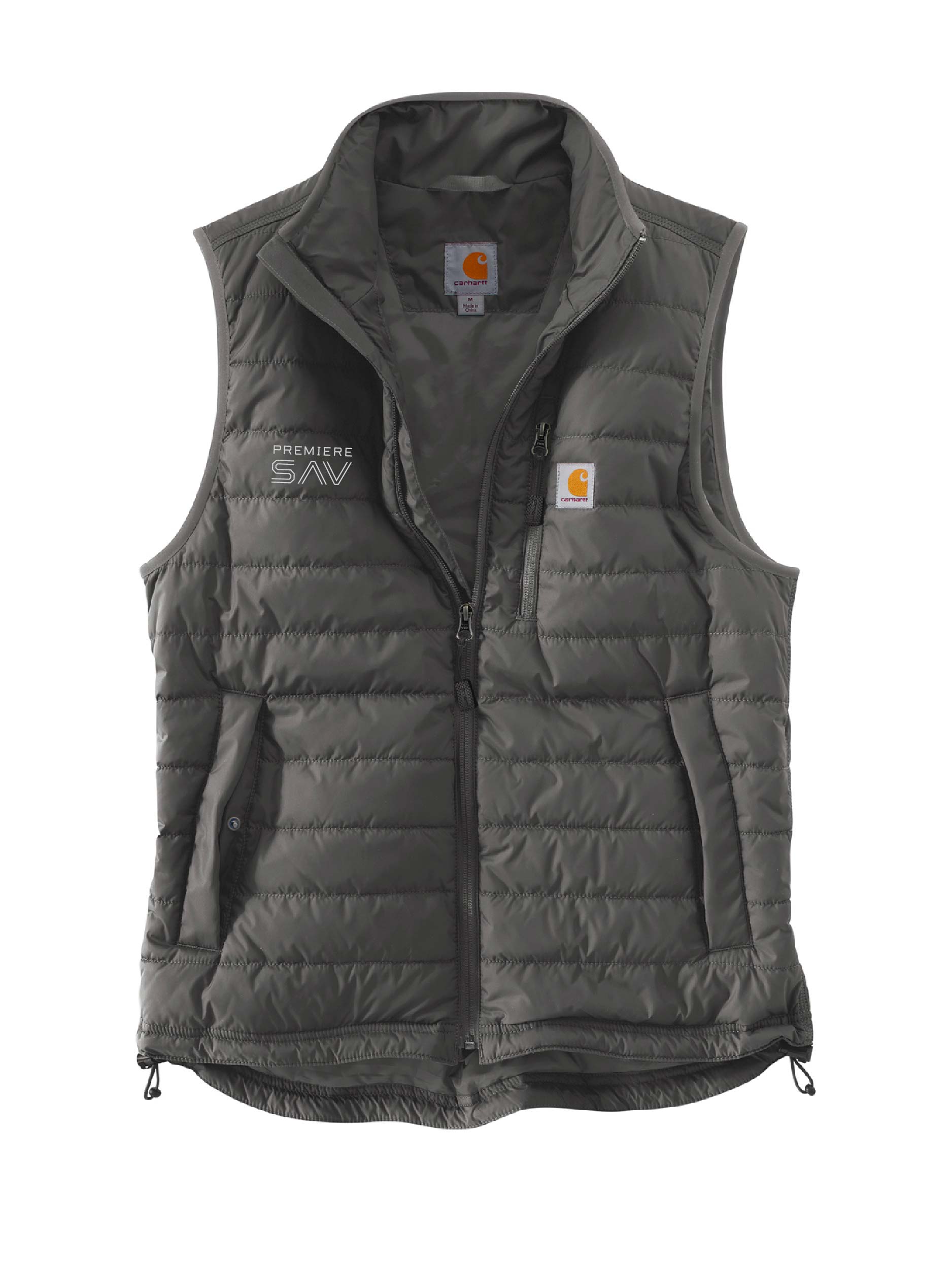 - Carhartt label sewn on chest pocket